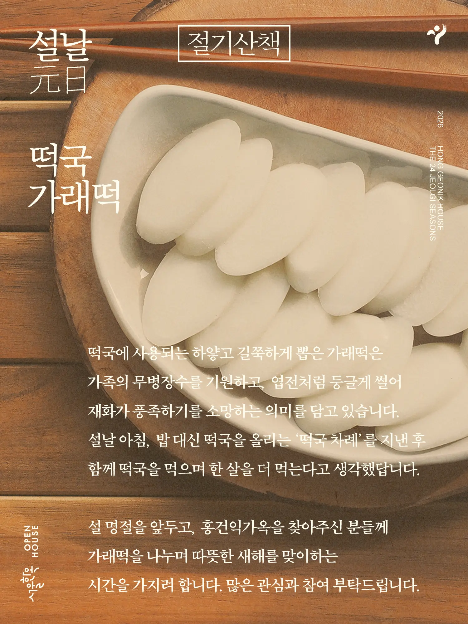 설 명절을 앞두고, 홍건익가옥을 찾아주신 분들께 가래떡을 나누며 따뜻한 새해를 맞이하는 시간을 가지려 합니다.
