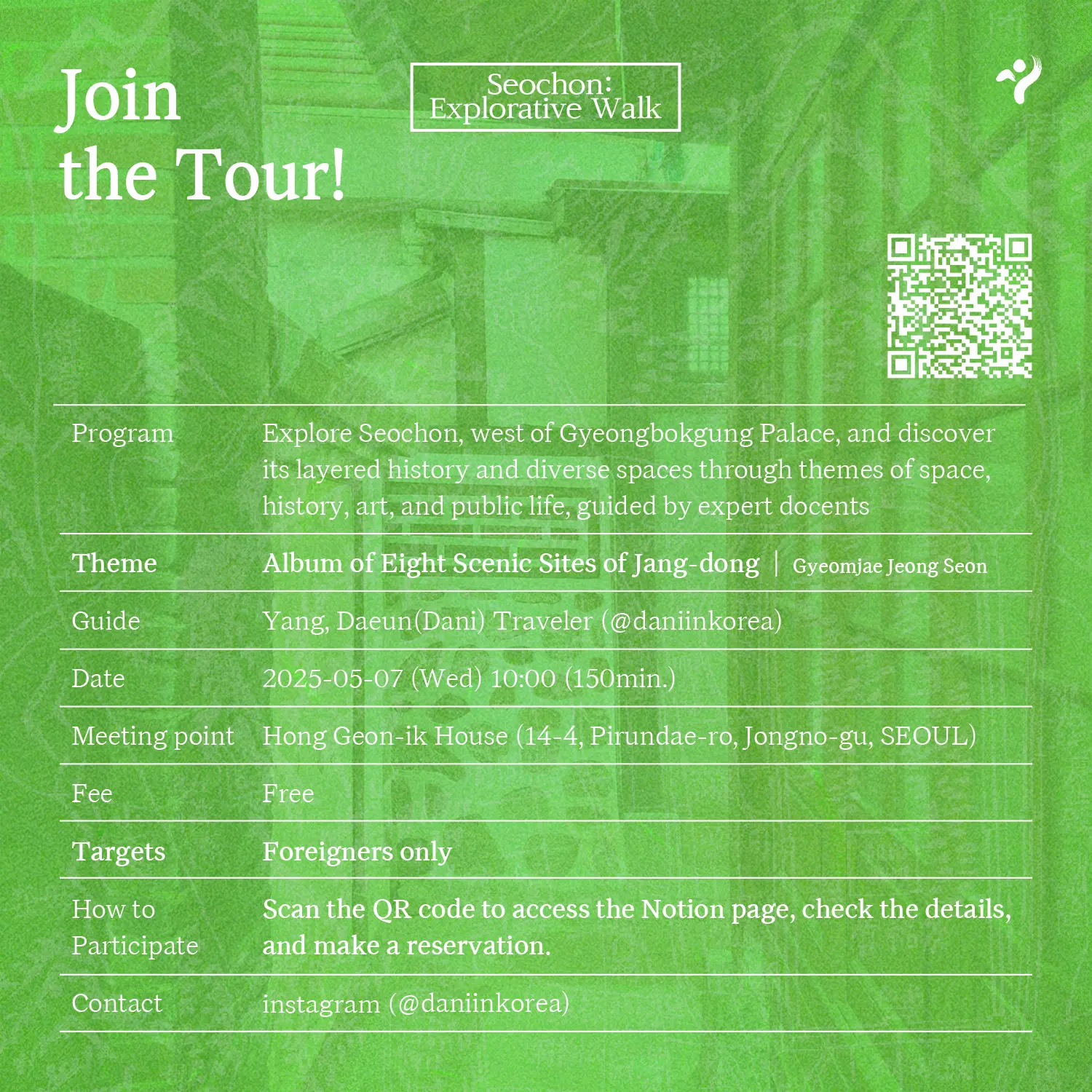 Hong Geon-ik House is excited to introduce Seochon : Explorative Walk, a guided tour designed for international visitors.